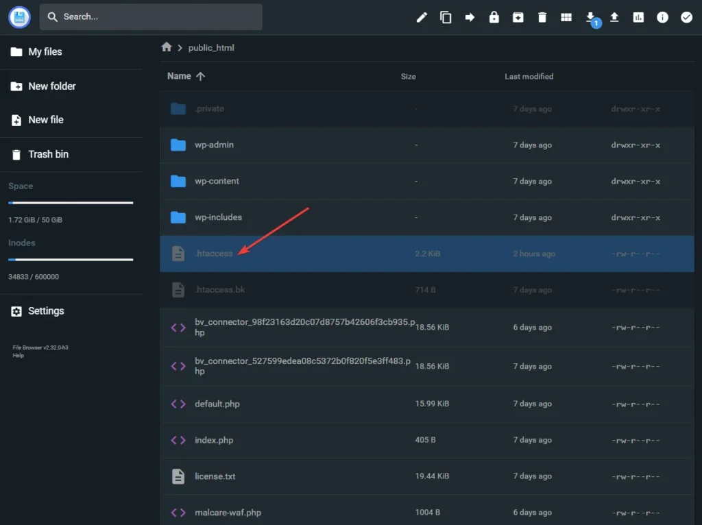 .htaccess文件。.htaccess_backup。.htaccess文件。如果错误依旧,请将文件改回原名,继续下一步。